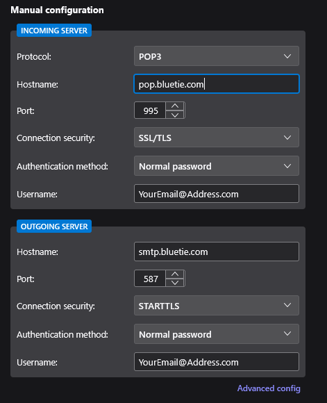 – Hostname: pop.bluetie.com