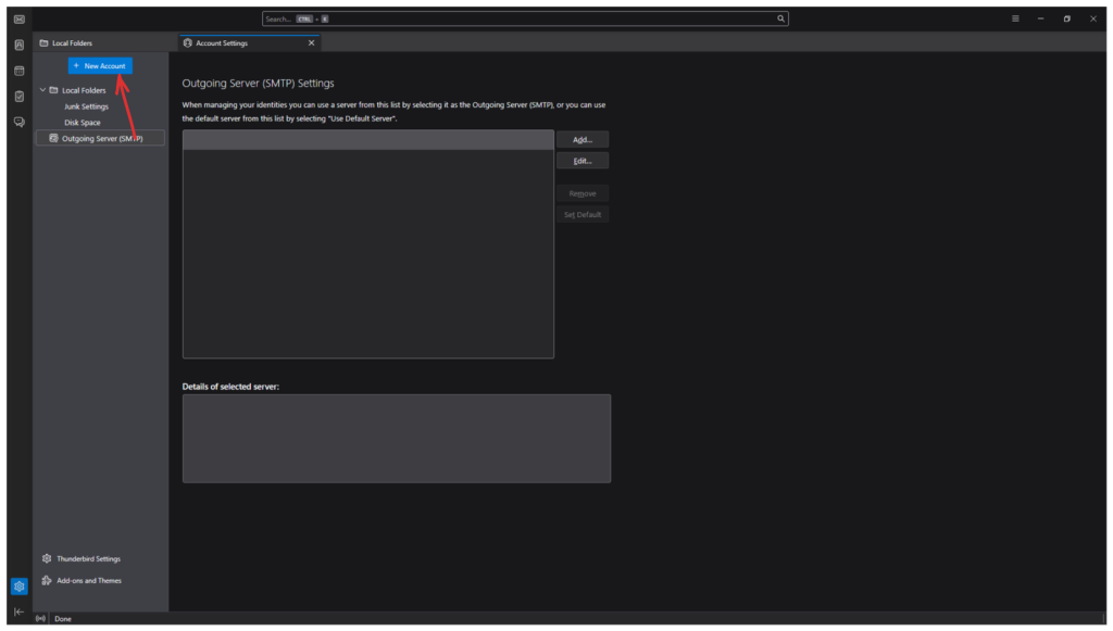 2. A new tab will appear. On the top left select “+ New Account” > Then select ” Mail Account…“