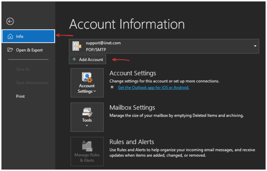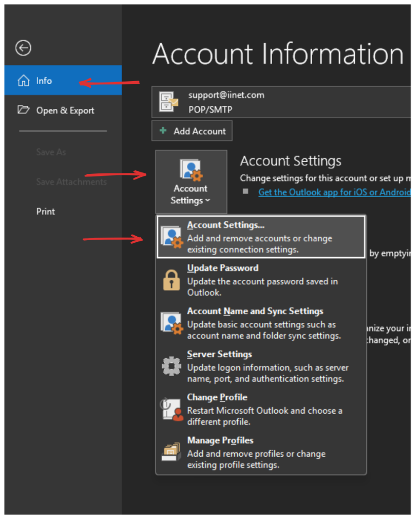 - POP: Once you have selected done. Go into File > Account Settings > Account Settings