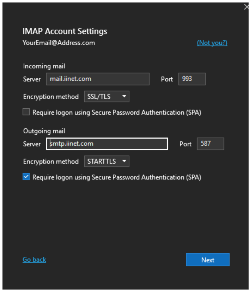 If you have an email ending in anything other than @iinet, i.e. @pacifier, @proaxis, etc follow the server settings below