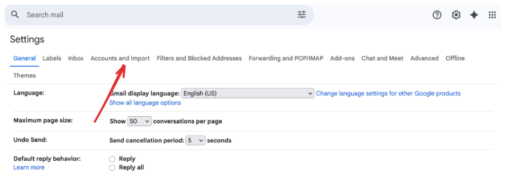 - Click the Accounts and Import tab under Settings