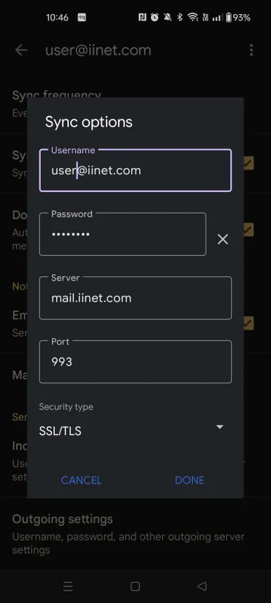 – Server: mail.iinet.com