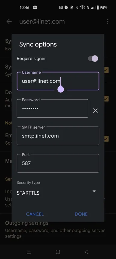 – SMTP Server: smtp.iinet.com